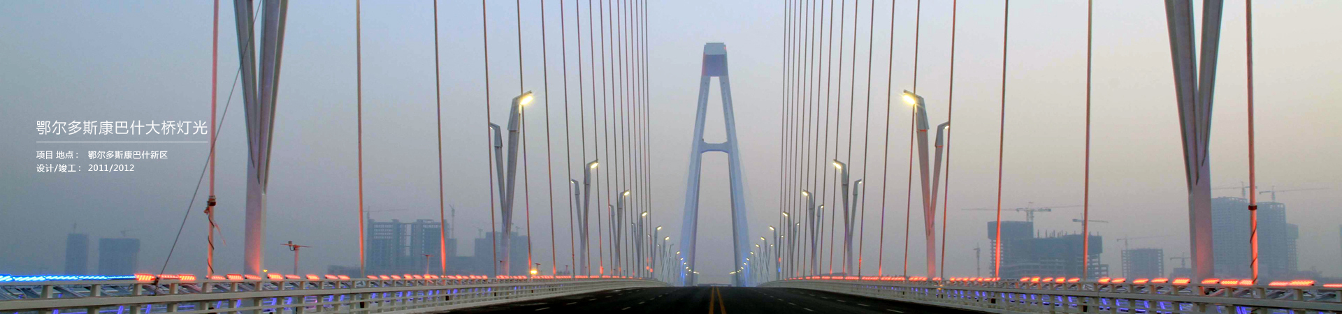 鄂爾多斯康巴什大橋(烏蘭木倫河4號橋)位于康巴什新區(qū)烏蘭木倫河下段河道,橋梁全長1005米,主橋長800米,主跨為450米的雙塔雙索斜拉橋,橋?qū)?7米,塔高129米,主跨和主塔采用鋼結(jié)構(gòu),邊跨和引橋采用混凝土箱梁結(jié)構(gòu),共有斜拉索68對,屬于國內(nèi)大型斜拉橋。為更好的表現(xiàn)景觀效果,我們?yōu)榭蛋褪泊髽蛱貏e設(shè)計(jì)了一款大型景觀燈具,馬燈。
